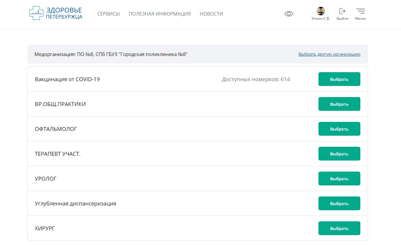 А вот так выглядит раздел «Запись к врачу» на портале «Здоровье петербуржца»: