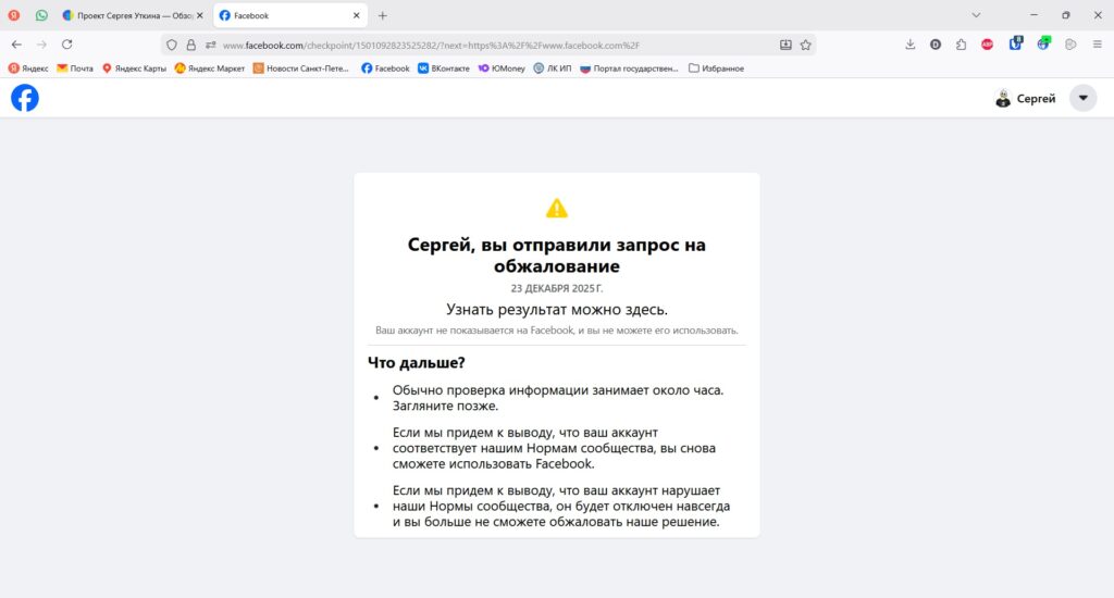 Судя по всему, результат отрицательный. Что именно их не устроило и какие нормы я нарушил? Нет ответа. Просто аккаунт недоступен. Правда, от щедрот Сукерберга предложили сформировать и скачать с записями из блога.