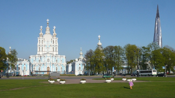 Вчера в комментариях к одной из записей группы "Город, которого нет..." внезапно всплыла тема возвращения памятника Александру Третьему работы Паоло Трубецкого на площадь Восстания (бывшую Знаменскую). Установленную на площади стелу, посвященную 40-летию Победы предлагают перенести на площадь Мужества. Как оказалось, это инициатива некоего Фонда содействия строительству культовых сооружений РПЦ в Санкт-Петербурге. Кроме возвращения памятника на свое историческое место, Фонду очень хочется построить колокольню Смольного собора, которую Растрелли спроектировал, но построена она так и не была. И слава Богу, поскольку даже в макете колокольня выглядит чудовищно.