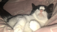 Принцесса отдыхает после забегов. Хотел мордашку сфотить, но эту егозу фиг удержишь. Гной уходит, насколько я могу судить, левый глаз не поврежден. Часть зрачка открылась, глаз реагирует на свет. Но теперь у Дашки другая проблема — раньше она смотрела одним глазом и видела четкую картину. А теперь в поле зрения левого глаза громадное пятно и это сбивает её с толку. К счастью, это уйдёт вместе с гнойником.