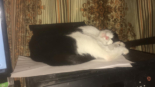 Собираюсь в магазин, эта егоза по квартире носилась. Потом на подоконник вскочила. Надо ей лечь, поверх шторы. А штора свисает. Обычно я ей помогаю, а тут занят процессом влезания в зимнюю шкуру. Так Дашка на штору уселась и пятой точкой начала ввинчиваться, заталкивая ткань ближе к раме. Финал процесса успел сфотить.
