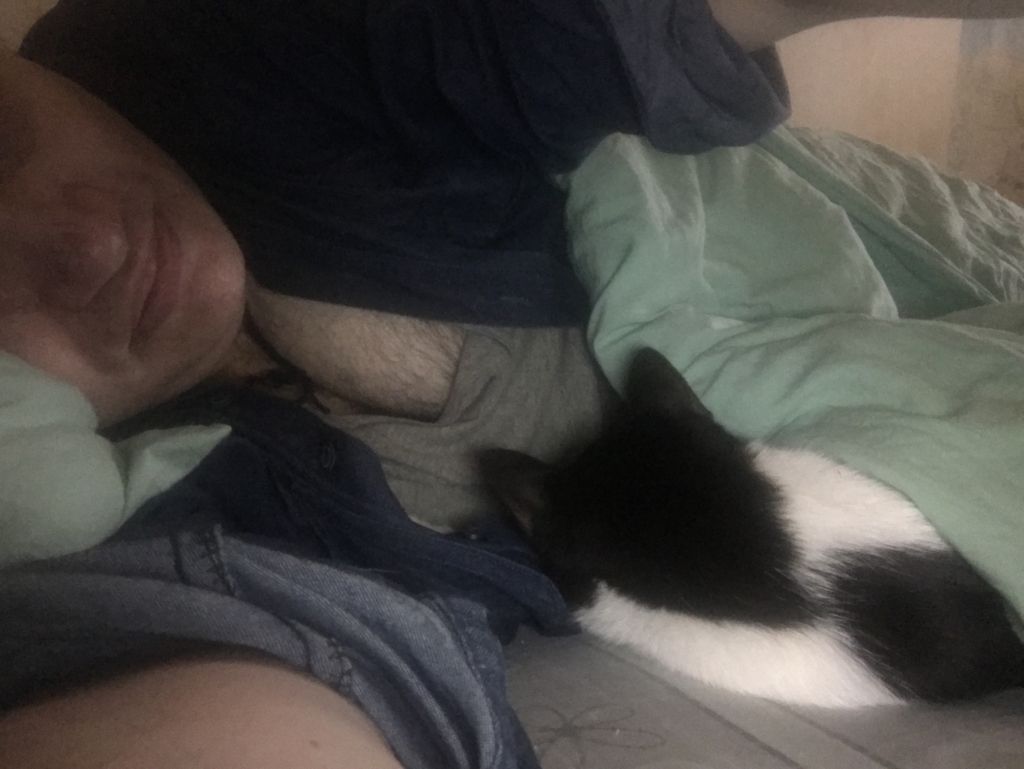 У Дашки на прошлой неделе был очередной сезон поиска любви со всеми сопутствующими ритуалами. А сейчас период «у меня голова болит». Отсыпается в другой комнате, ко мне не приходит. Только немного подкормиться заглянет да туалет посетит. И опять баиньки.