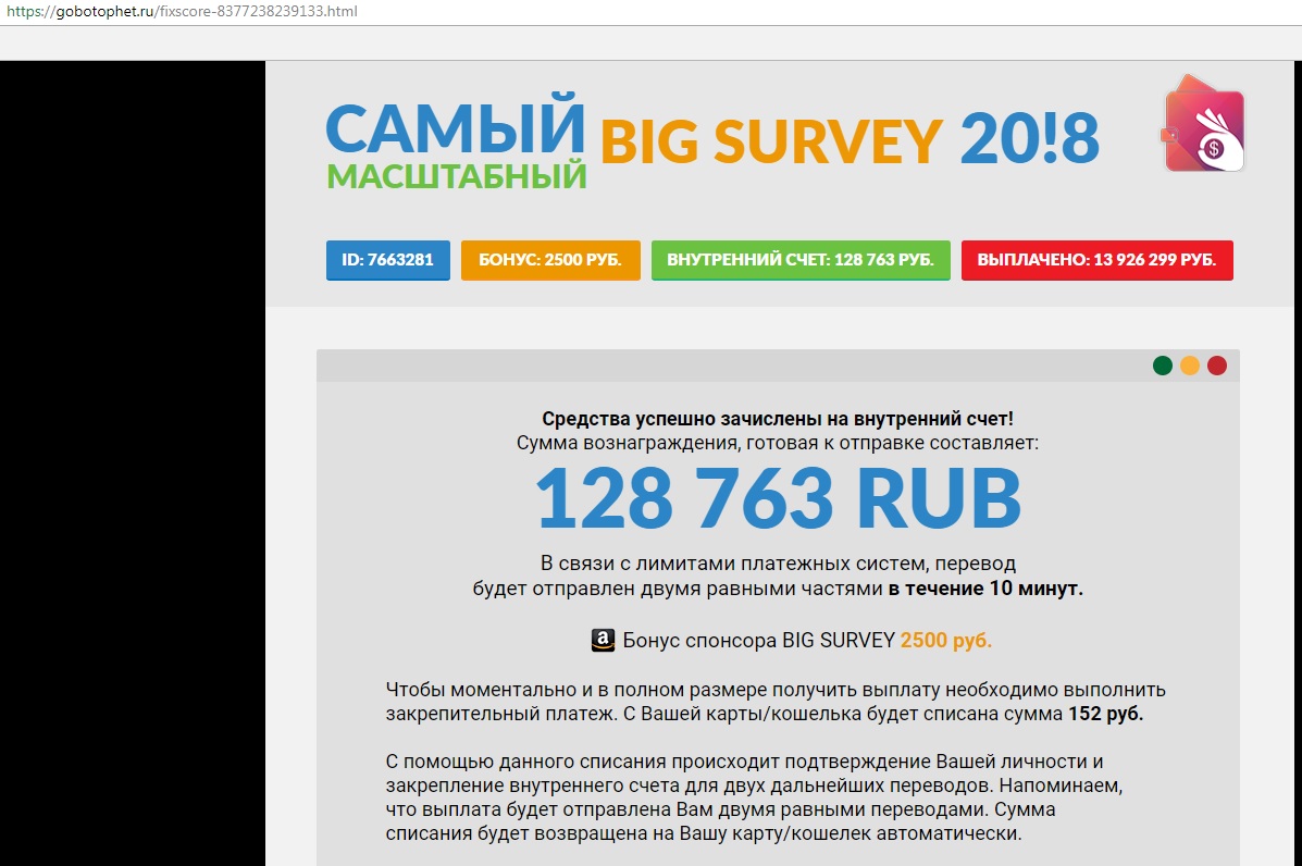 Вопросы, сумма вознаграждения, бонус от спонсора, комментарии и номер кошелька не меняются. Впрочем, от ваших ответов тоже ничего не зависит. Цель лохотрона: выудить 152 рубля из как можно большего количество лохов. И, вполне вероятно, украсть данные банковской карты.