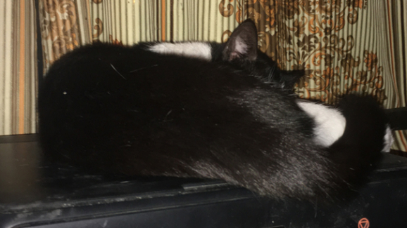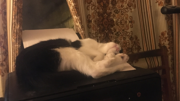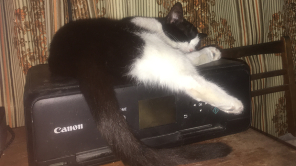 Дашка в процессе обдрыхивания отремонтированного принтера. Как я и сказал, лоток теперь всегда буду убирать, когда принтер не нужен. Дашка это...