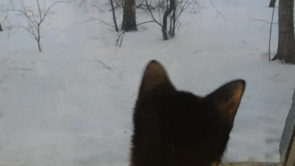Хотел сфотографировать проталины возле деревьев, но тут Дашка влезла на подоконник. В результате уши в окне и деревья за окном. Где-то читал, что...