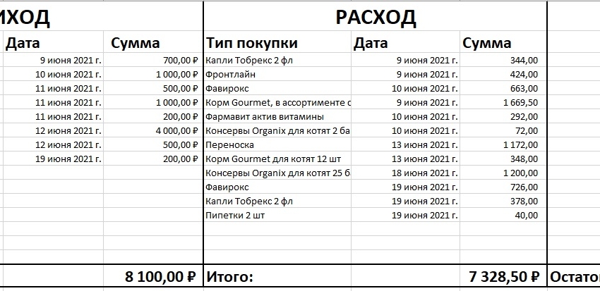 Отчёт на 3 июля. По таблице у нас минус выходит, де факто 511 рублей на двоих. Еды хватит где-то на неделю. Лекарства Дашке, скорее всего, докупать...