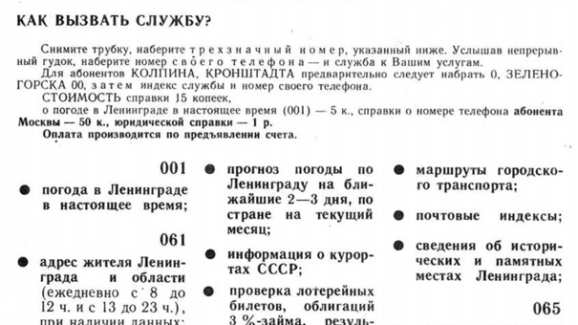 Я уже говорил, что я идиот? Вот вам ещё подтверждение этой аксиомы: некоторое время назад я писал про платные телефонные службы и мучительно вспоминал, под каким номером что было. И ещё пожалел, что этой информации нет в телефонных справочниках. Идиотизм заключается в том, что у меня на диске сканы двух справочников ЛГТС - Ленинградской городской телефонной сети, за 1988 и 1991 года. И в обоих есть подробный список всех платных служб. Только я искал эту информацию в начале справочника, а она напечатана в конце. По катом подробный список, если кому интересно.