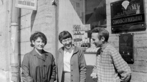 Родная Тверская, угол с улицей Красной Конницы. Таврический слева, Смольный справа. За спиной у людей магазин самообслуживания, который в...